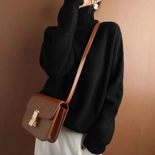 Pullover mit langen Ärmeln und Rollkragen für Herren mit 3D Rautenmuster