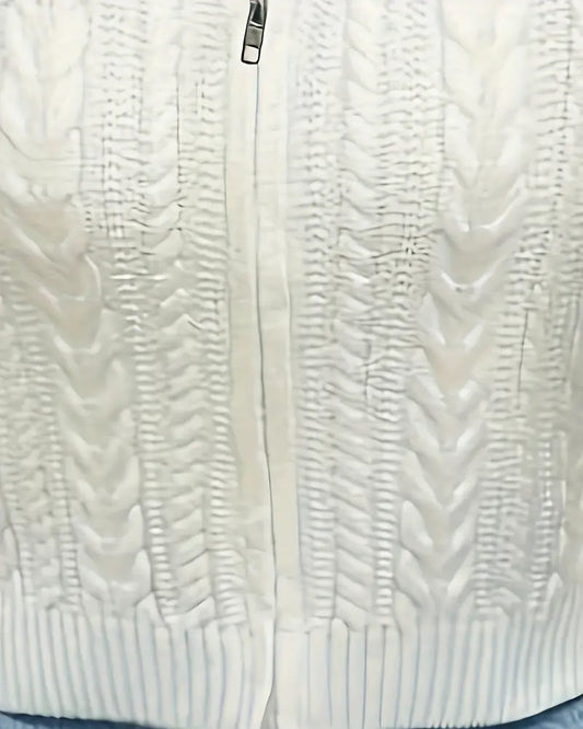 Sweatshirt Reißverschluss Zopfmuster Langarm