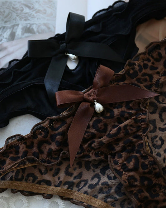 Sexy Leopardenmuster Spitze Tanga Atmungsaktive Silbernem Band Unterwäsche