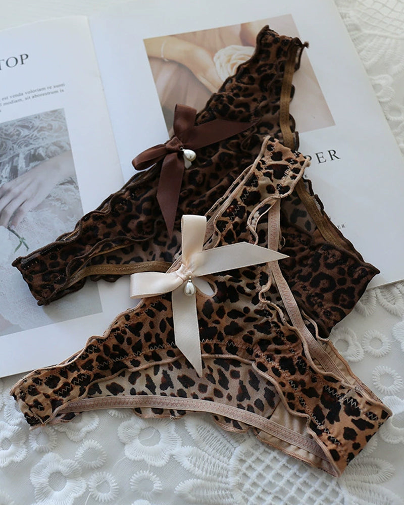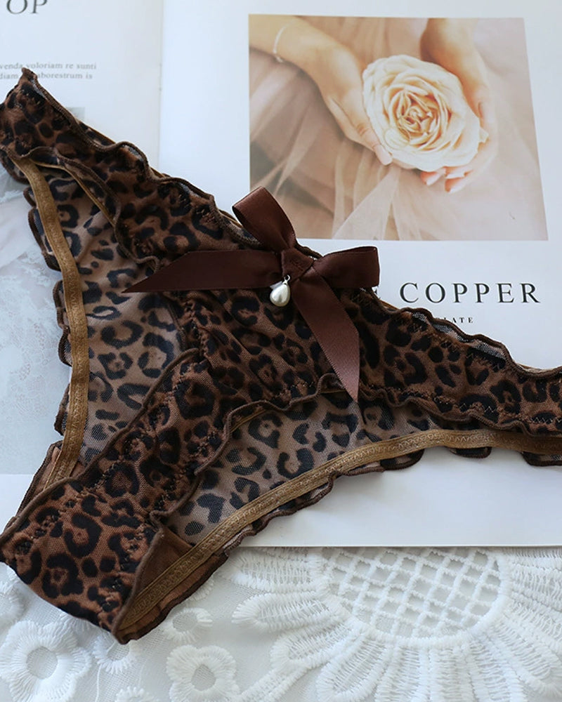Damen Sexy Mesh Perlen Tanga Niedrige Taille Schleifen Unterwäsche