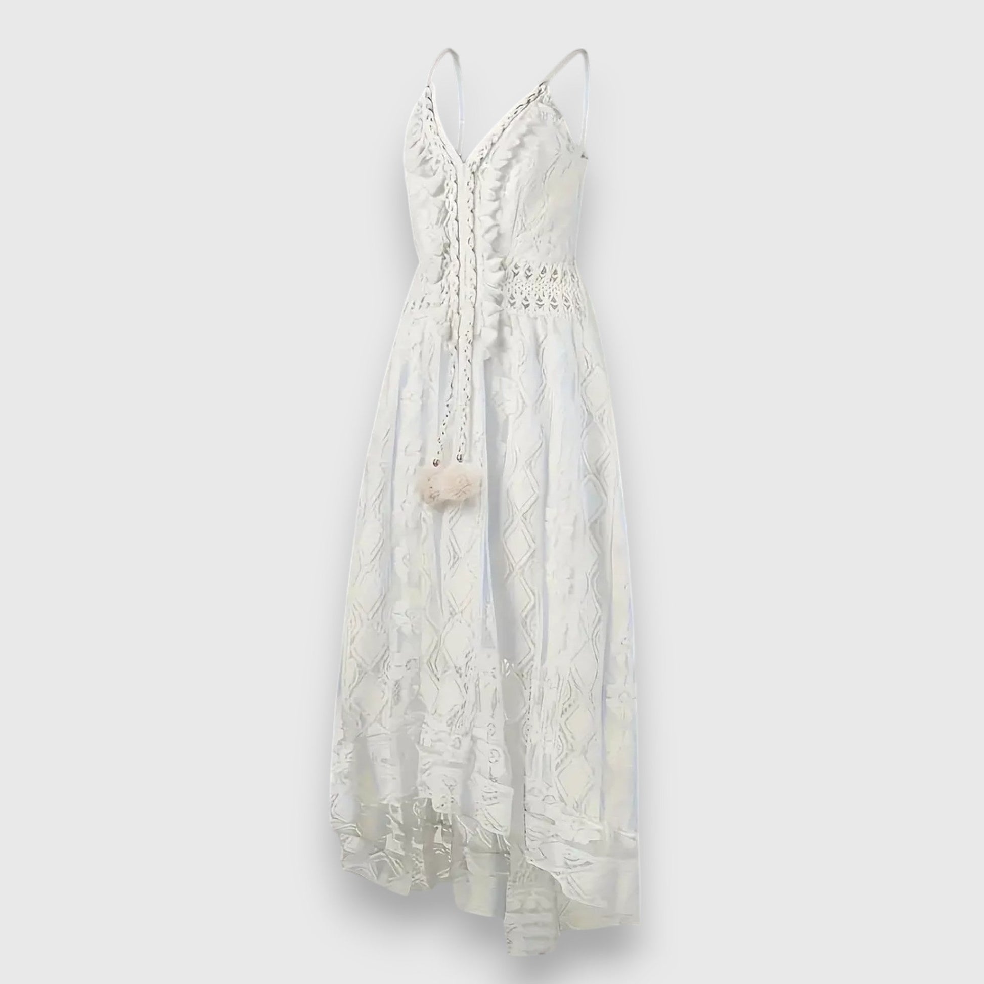 Das Fleur-Maxikleid vereint zeitlose Eleganz mit femininer Raffinesse und ist perfekt für besondere Anlässe. Der Off-Shoulder-Ausschnitt und die zarten Spitzenapplikationen verleihen dem Kleid eine romantische Note, während das geometrische Muster für einen modernen Touch sorgt.