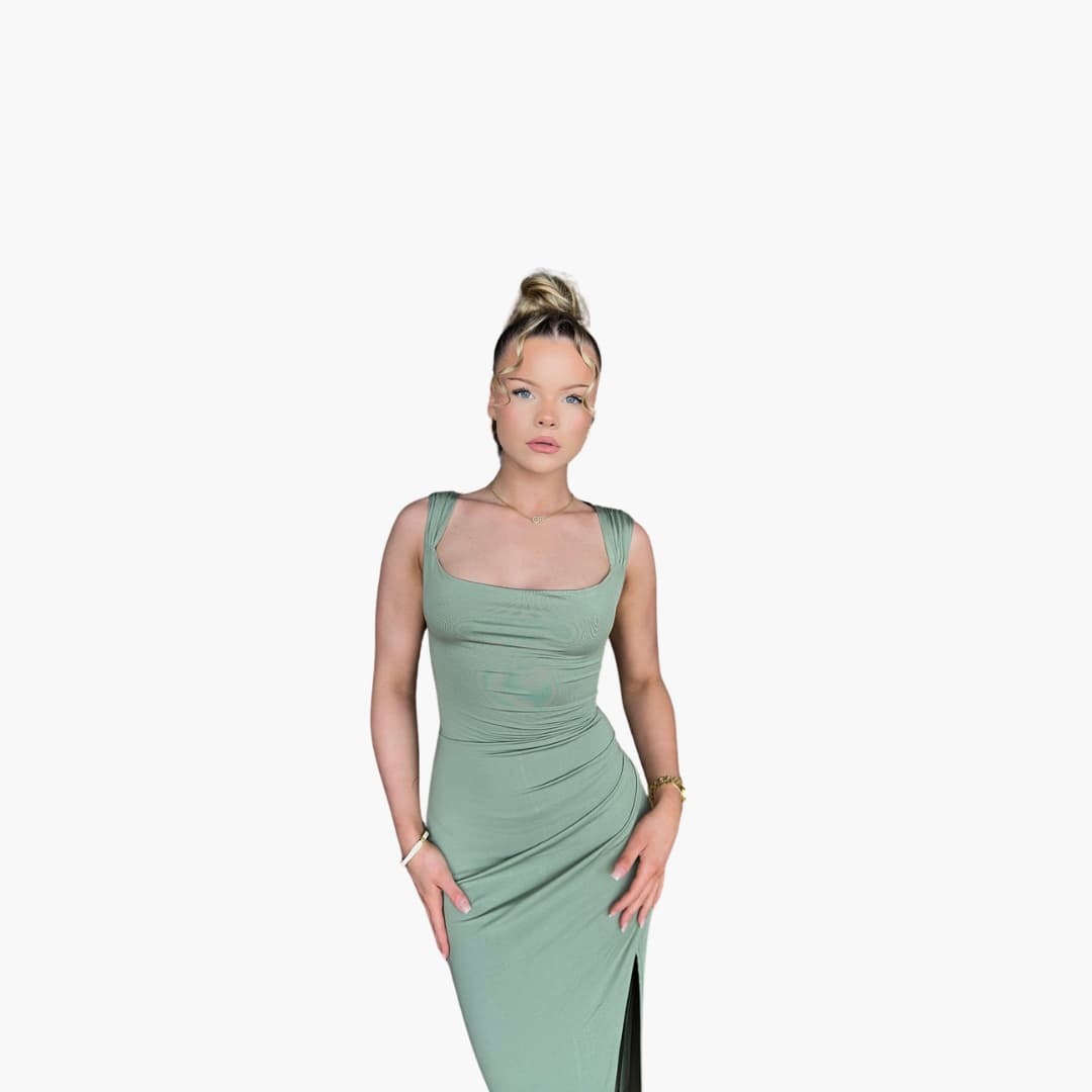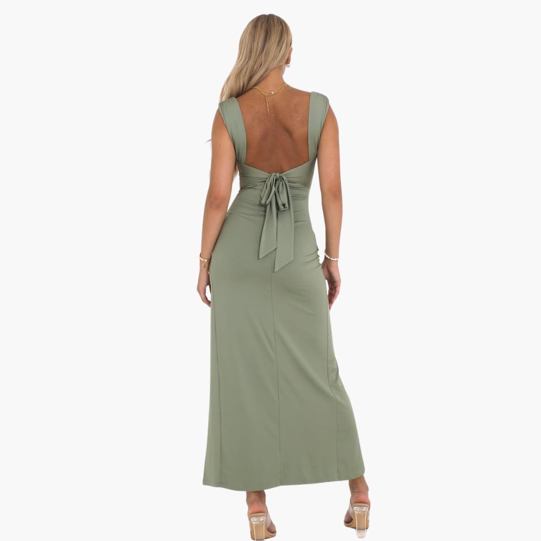 Das Jasmine Midikleid ist die perfekte Kombination aus Eleganz und Komfort. Mit seiner schmeichelhaften Passform und dem raffinierten Design ist es ideal für jeden Anlass. Das stylische Knotendetail auf der Rückseite verleiht Ihrem Look eine elegante Note.