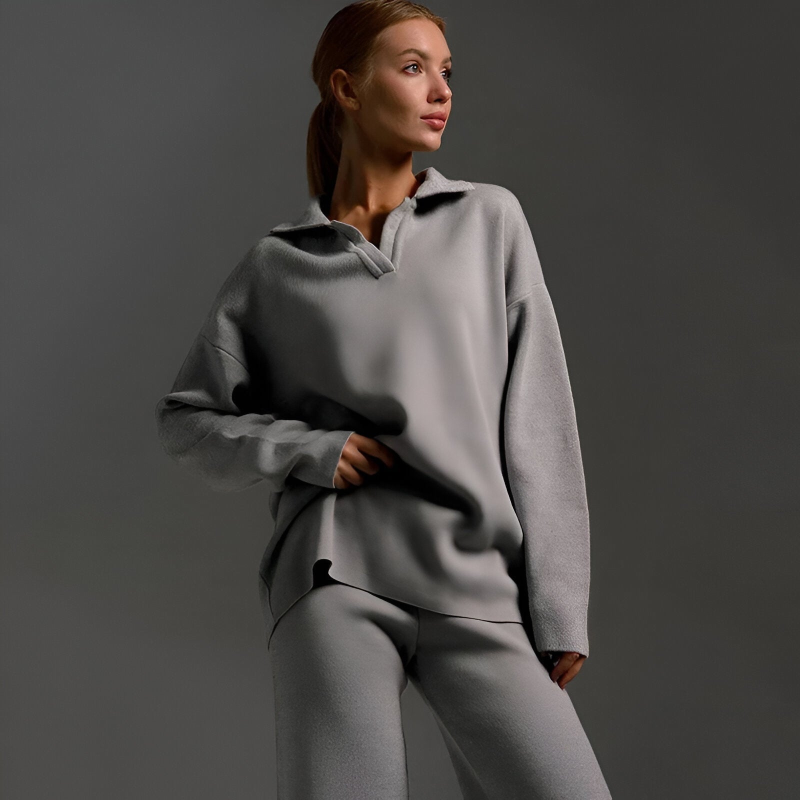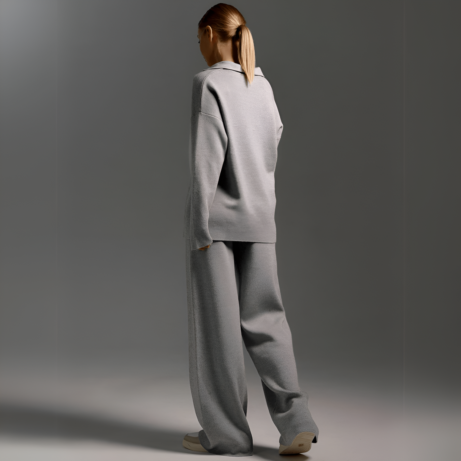 Dieser Trainingsanzug besteht aus weichem, atmungsaktivem Stoff und bietet eine perfekte Passform, in der Sie sich von morgens bis abends wohlfühlen. Das moderne Strickdesign verleiht jedem Anlass einen Hauch von Luxus. Kombinieren Sie es mit Turnschuhen oder Stiefeln für einen mühelos eleganten Look.