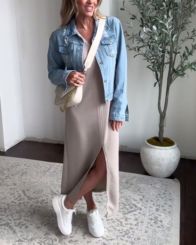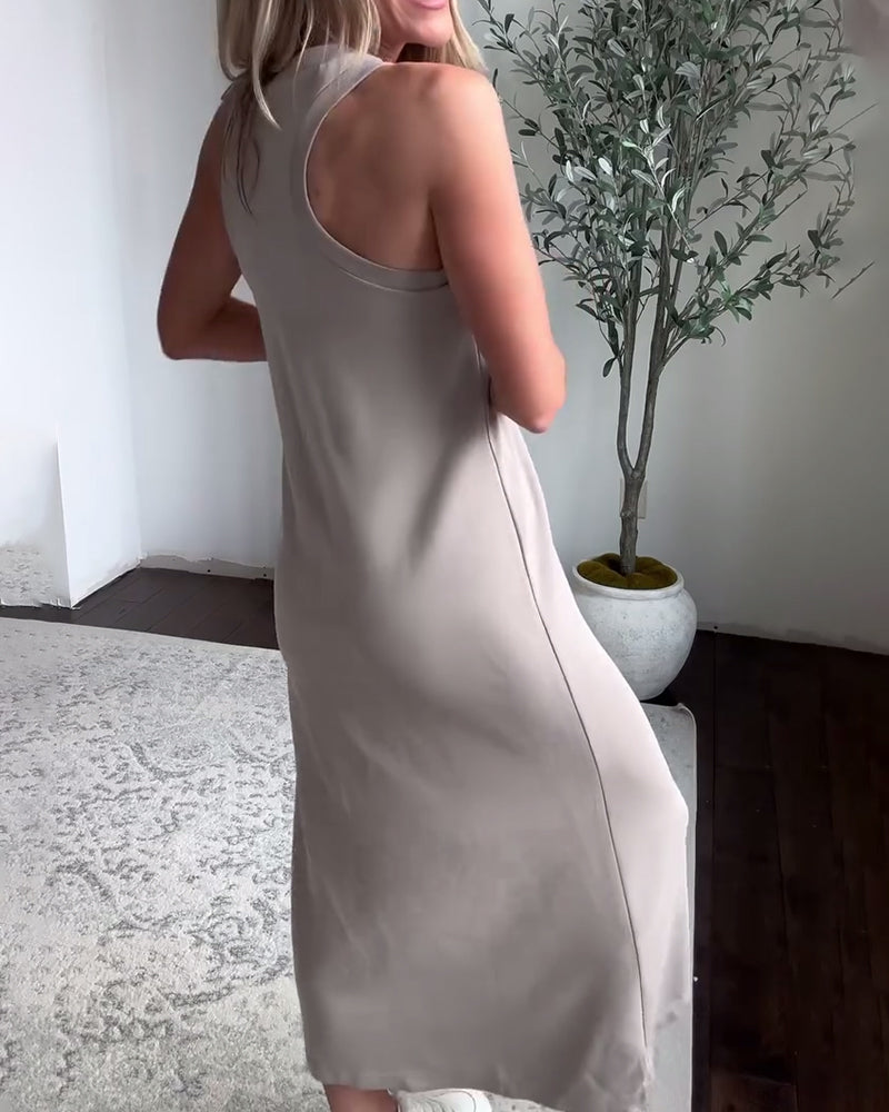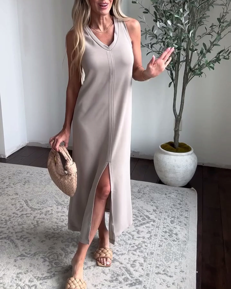 Kleid V-Ausschnitt Ärmellos Einfarbig Einfach