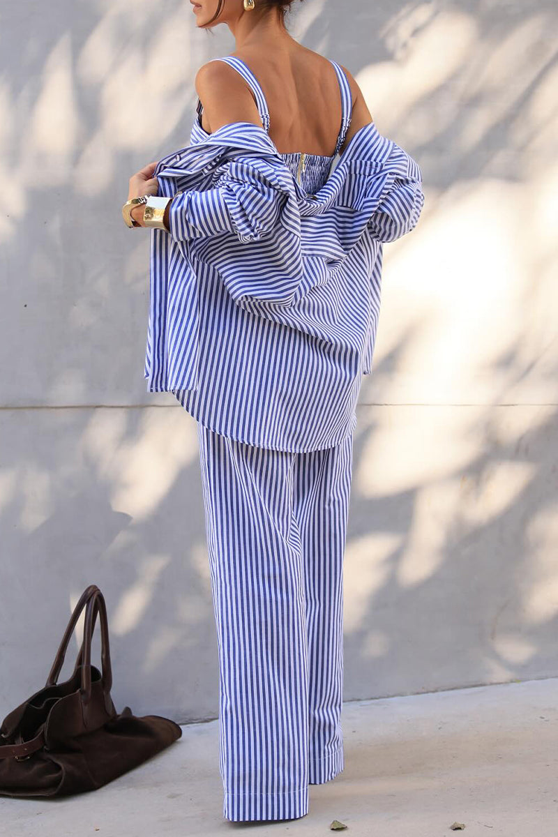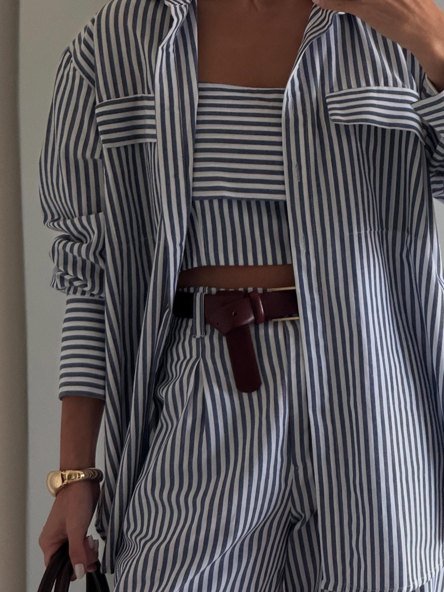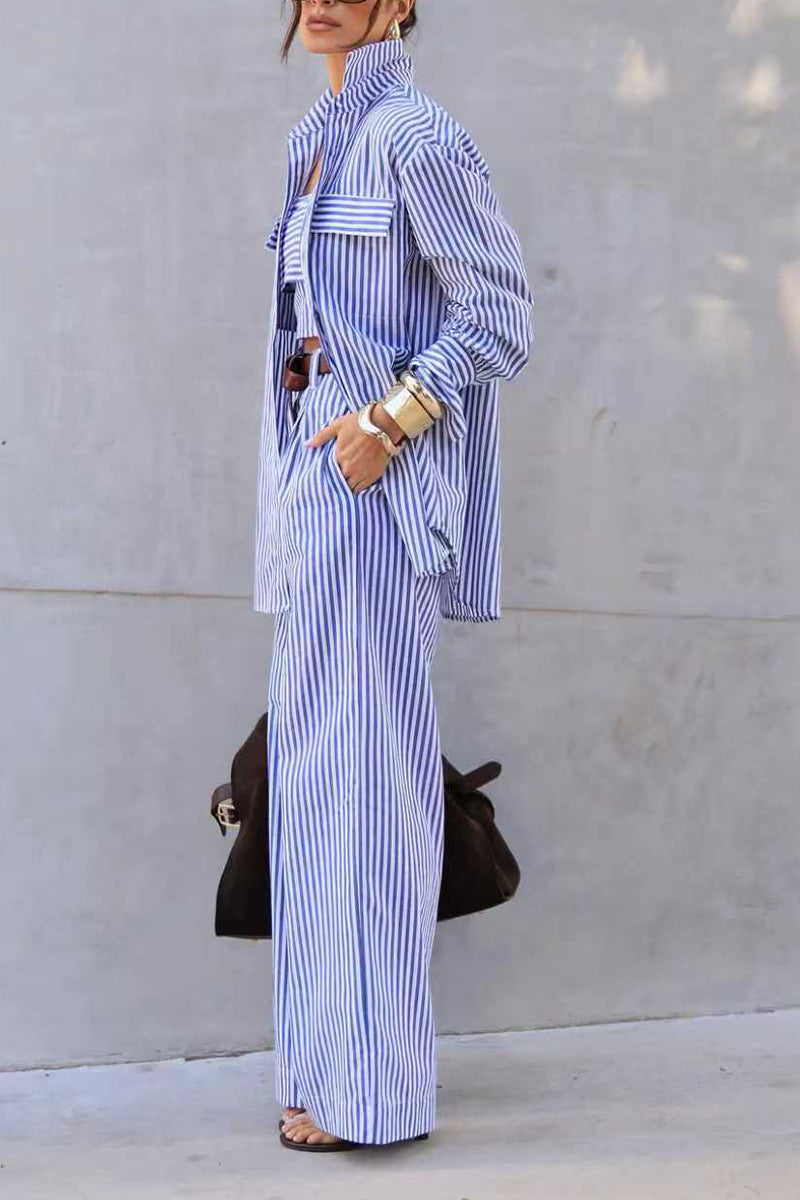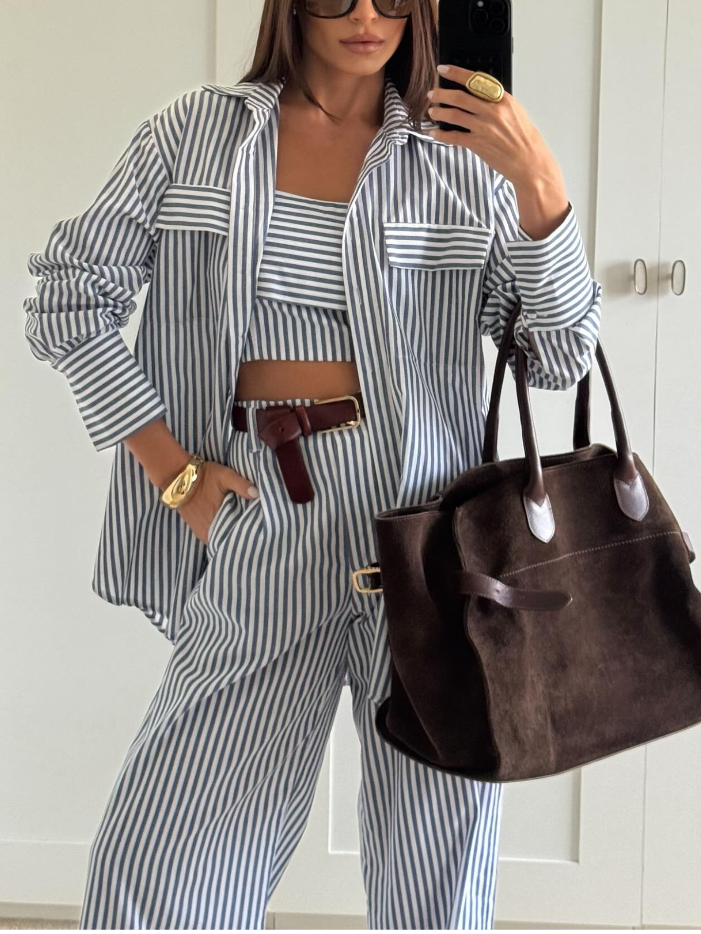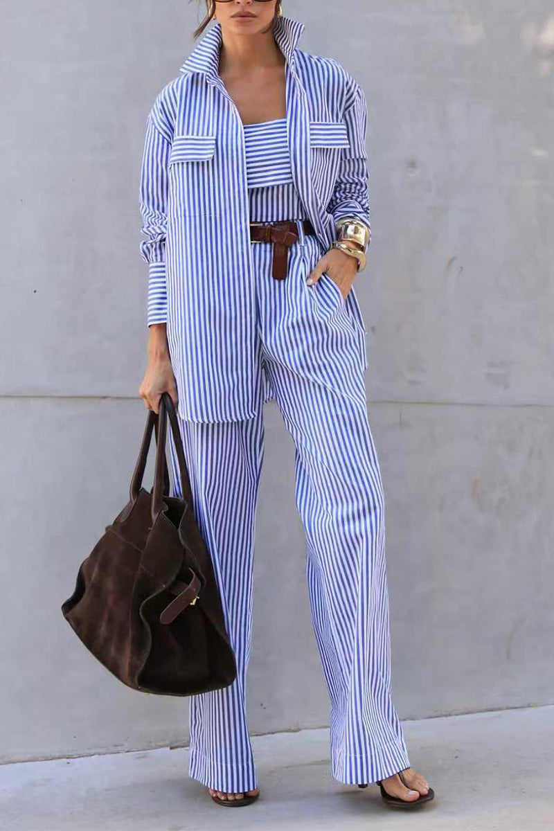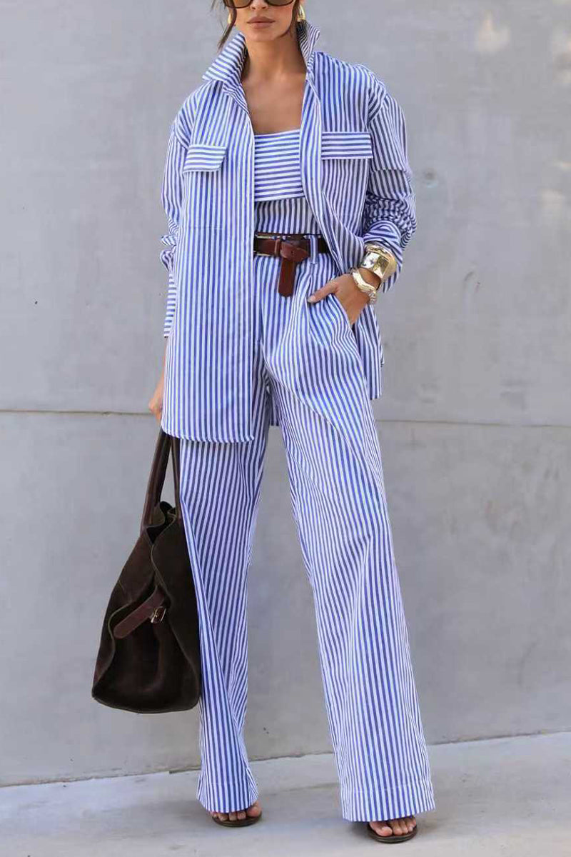 Lässiges dreiteiliges Set mit vertikalem Revers für Damen
