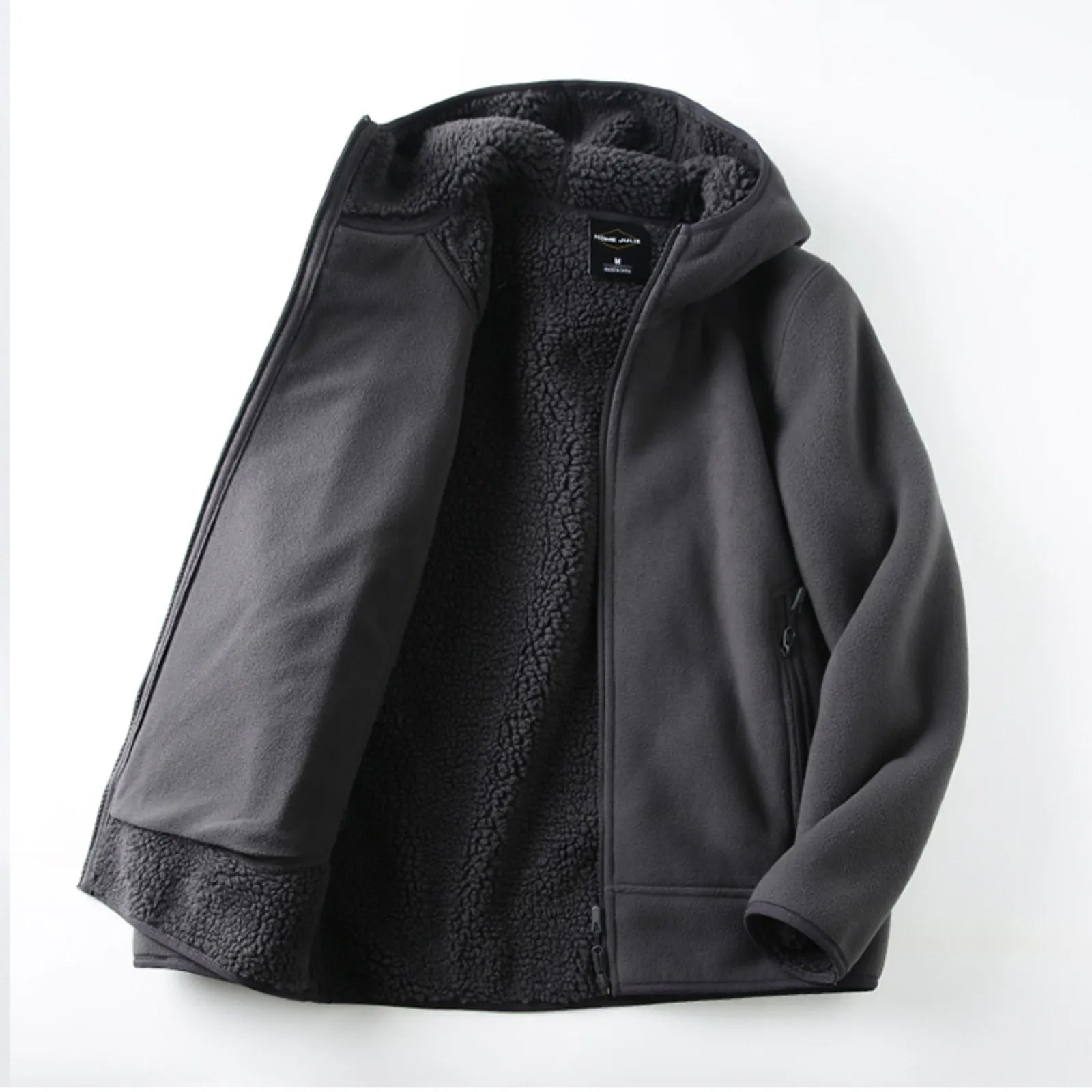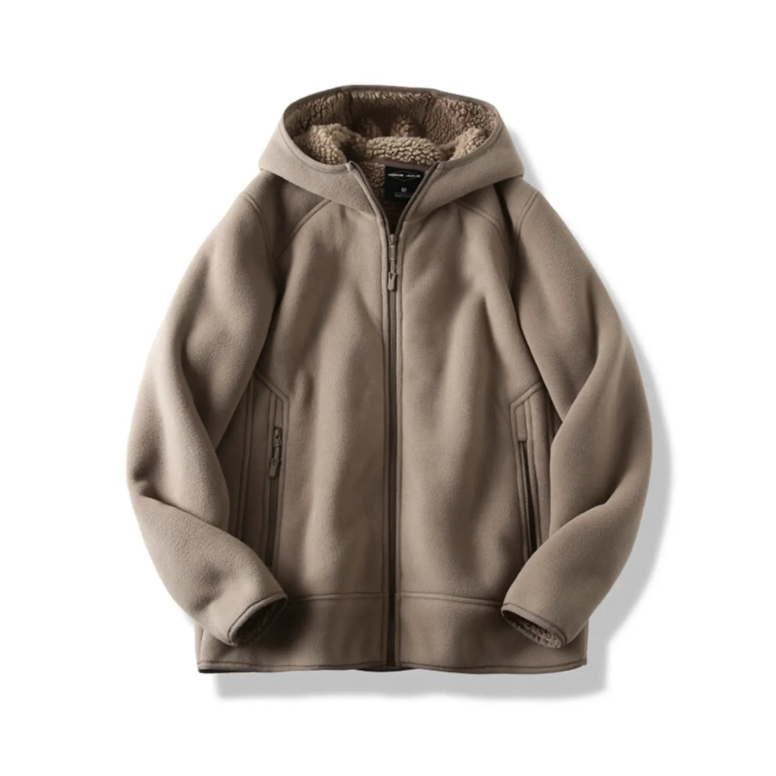 Diese kapuzen fleecejacke ist für Wärme und Funktionalität konzipiert. Sie verfügt über ein hochfloriges Sherpa-Futter, das die Wärme speichert, und eine strapazierfähige äußere Schicht, die den Wind blockiert. Mit Reißverschlusstaschen und einem durchgehenden Reißverschluss bietet sie praktische Anwendbarkeit für kalte Wetterbedingungen.
